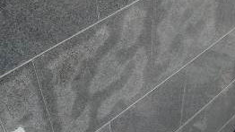 A classic example is illustrated in the image below, which shows the effect of salt attack on polished black granite panels that have been adhered to cement blockwork (direct stick). Even though the black granite is very strong and has a very low water absorption, the salt solution has crystallized within the grain boundaries causing micro-cracking. Had this risk been assessed prior to construction, the suitability of the stone and surface finish could have been checked and the need for repair or replacement may have been avoided.