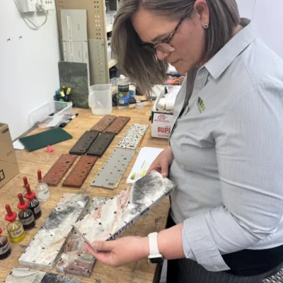 Stone Initiatives has wide experience in slip resistance, both in product testing and litigation. Our team can test for the slip resistance of your existing project on site, anywhere in Australia, or you can send surface samples to be slip tested in our NATA-accredited lab here in Adelaide. You can find more details on our dedicated slip resistance testing page here.