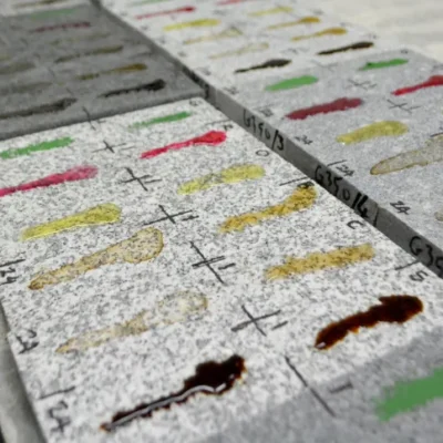 In addition to the following lists, other tests can be completed depending on the location of the installed stone. For example, if the stone is to be installed within or surrounding a swimming pool or spa, our team might recommend including other tests such as dimensional stability and chemical resistance. For some stone types, we might recommend a petrographic examination to identify any unusual features or minerals within the stone.